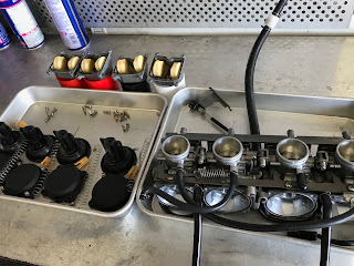 こちらのGPZ900Rも納車整備から車検整備も同時に。通常の点検整備に加えて、アイドリング、低速回転で不安定なためキャブレターOH、同調を行いました。